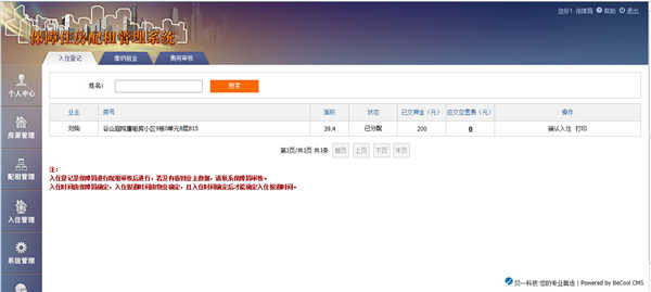 入住管理中包含入住登記、租金繳納和費(fèi)用審核等功能,并支持租金多月繳納。