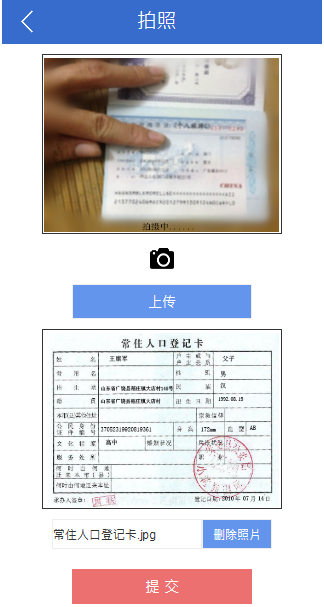 ”拍照“頁面效果圖