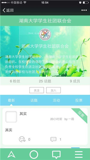 “社掌”是一款集發(fā)布話題、社團(tuán)活動(dòng)、投票等功能于一體的手機(jī)應(yīng)用軟件。主要是便于全校學(xué)生社團(tuán)及社團(tuán)活動(dòng)的管理、協(xié)調(diào)與監(jiān)督,發(fā)揮溝通學(xué)校與社團(tuán)之間的橋梁作用。