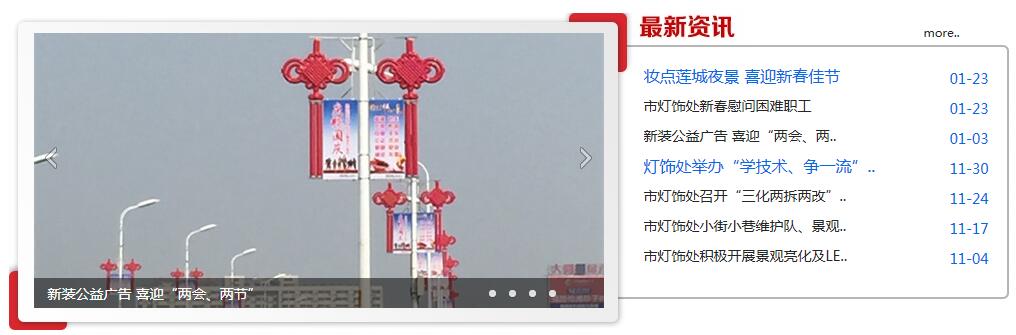 湘潭市燈飾管理處官方網站全權交由湘潭貝一科技有限公司設計制作。以燈飾、亮麗為主題,將視覺標志化,用視覺來增加官方的識別度,讓大眾在第一眼后就能清晰的辨別出這是一個以燈飾為主題的官方網站,精美的美工小細節(jié)圖如下: