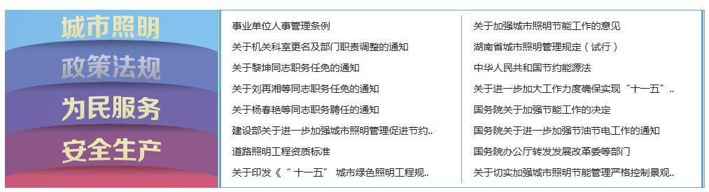 湘潭市燈飾管理處官方網站欄目結構如下表: