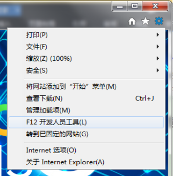 ”,選擇“F12開發(fā)人員工具”,或者打開IE后直接點(diǎn)擊鍵盤的“F12”。