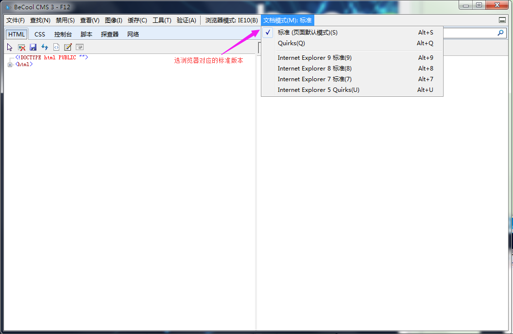 IE瀏覽器切換標(biāo)準(zhǔn)模式的方法