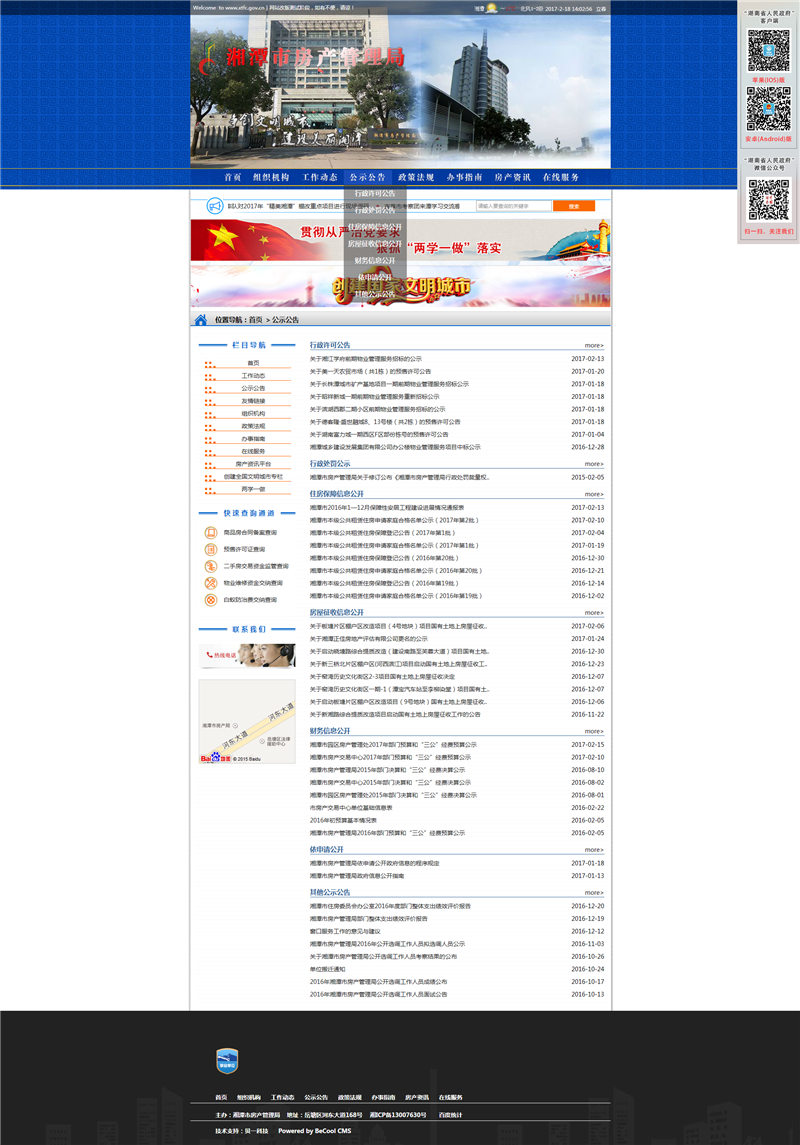 貝一科技是湘潭市房產(chǎn)管理局服務(wù)多年的技術(shù)服務(wù)商。次此改版主要針對(duì)美工升級(jí)、欄目整編和功能升級(jí)。