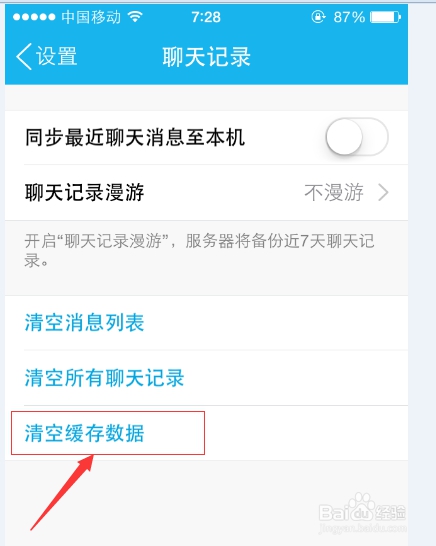 第五步我們點擊“清空緩存數(shù)據(jù)”功能鍵,操作成功后,手機QQ軟件產(chǎn)生的緩存就能清理完畢了。