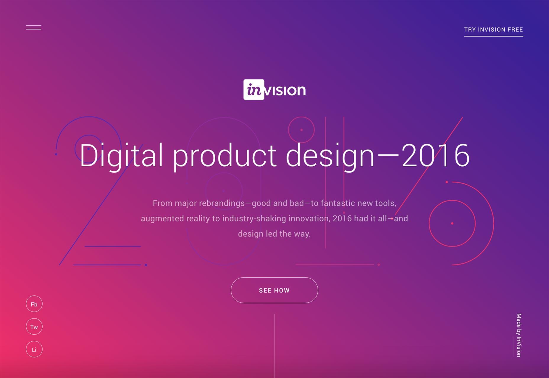 除開其他的目的,設(shè)計師使用色彩或者調(diào)整色彩的目的,基本都是為了創(chuàng)造設(shè)計的一致性。InVision 的年度總結(jié)頁面使用了從粉色到紫色的漸變,在頁面的下方,粉色和紫色同樣應(yīng)用到了按鈕中,此外,在著陸頁當(dāng)中,將對比度明顯的白色置于粉色+紫色的背景之上,確保信息的清晰呈現(xiàn)。如果色彩每次都不一樣,那么整個設(shè)計看起來就不是那么令人難忘了。