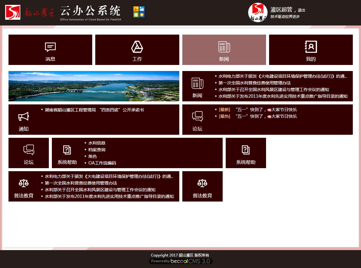 系統(tǒng)主要從單位門戶網(wǎng)站、云辦公系統(tǒng)、視頻會(huì)議、視頻監(jiān)控、智慧旅游、智能水利等版塊進(jìn)行系統(tǒng)建設(shè)和規(guī)劃,以更好地為山韶灌區(qū)服務(wù)和工作開展。