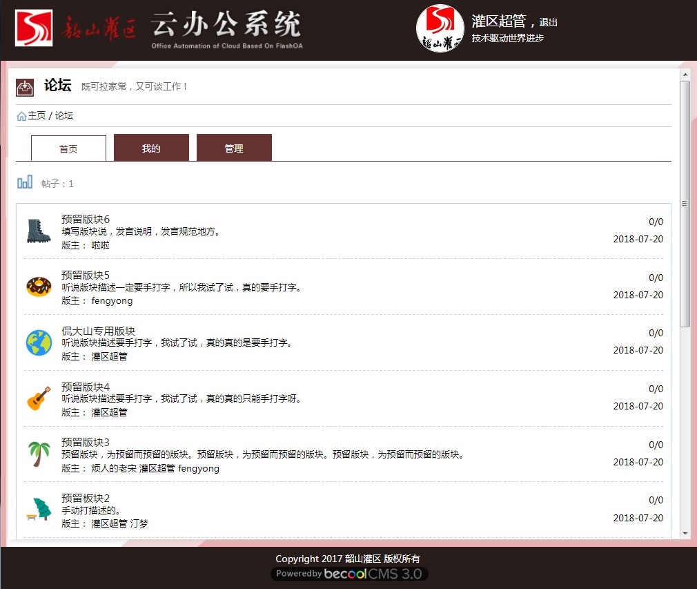 板塊、板塊置頂、禁用帖子、發(fā)帖、帖子、點(diǎn)贊與反對(duì)、回帖、我的、刪除帖子、我的管理、添加板塊、查看板塊。 |